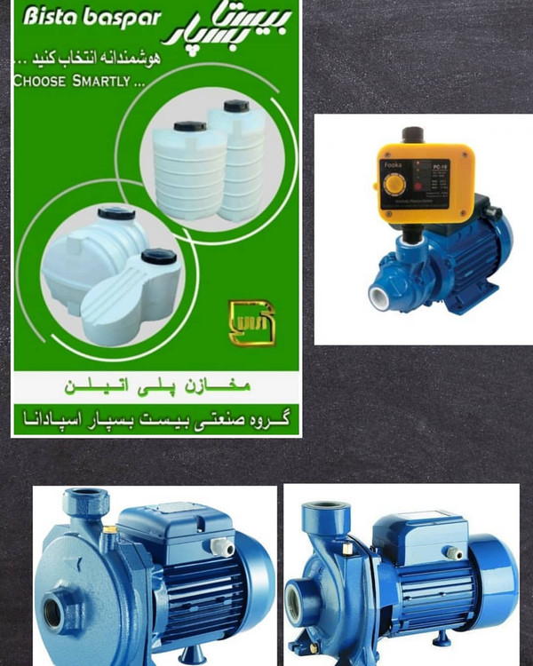 فروش ویژه پمپ و مخزن (نقد و اقساط) پمپ های بشقابی زنیکس و انیکس با ه گارانتی به همراه ست کنترل(اتوماتیک)انیکس و انرژی پروانه تمامی پمپ ها از جنس استیل می باشد. مخزن های سه لایه پلی اتیلن بیست بسپار اسپادانا با ۶۰ ماه گارانتی مخازن آنتی باکتریال دارای نشان استاندارد ،سیب سلامت و مجوز از سازمان غذا و دارو می باشد. فروش به صورت حضوری و غیر حضوری ارسال به تمام نقاط در کمترین زمان ویژه برای کامیونی مخازن جهت کالای مورد نظر دهید. # کالای ساختمانی_ محمد # الکتروپمپ _بیست بسپار # شیرآلات _قهرمان # شیرآلات # شایان# طوفان فلز نوید # گلپایگان انیکس و زنیکس # چینی پارس سرام # کرد